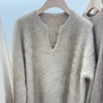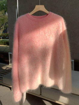Suéter de punto de Cachemira mongol 100% personalizado para mujer con cuello redondo y estilo informal